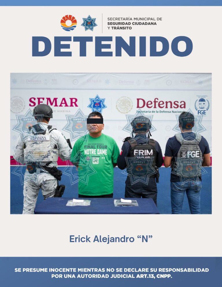 Cancún, Q. Roo., 14 de noviembre 2025.- En el marco del operativo Blindaje Cancún, en acción coordinada con la Fiscalía General del Estado (FGE) y autoridades federales, elementos de la Secretaría Municipal de Seguridad Ciudadana y Tránsito (SMSCyT) detuvieron a…