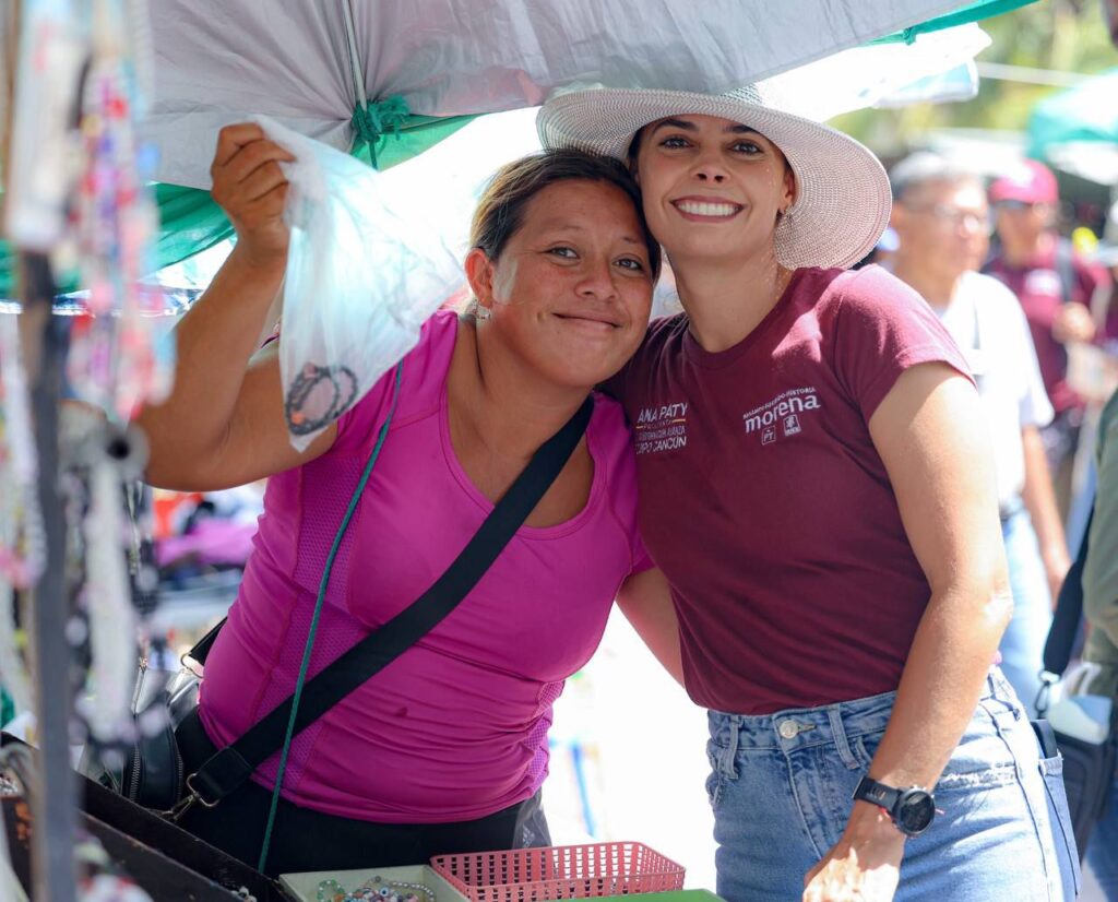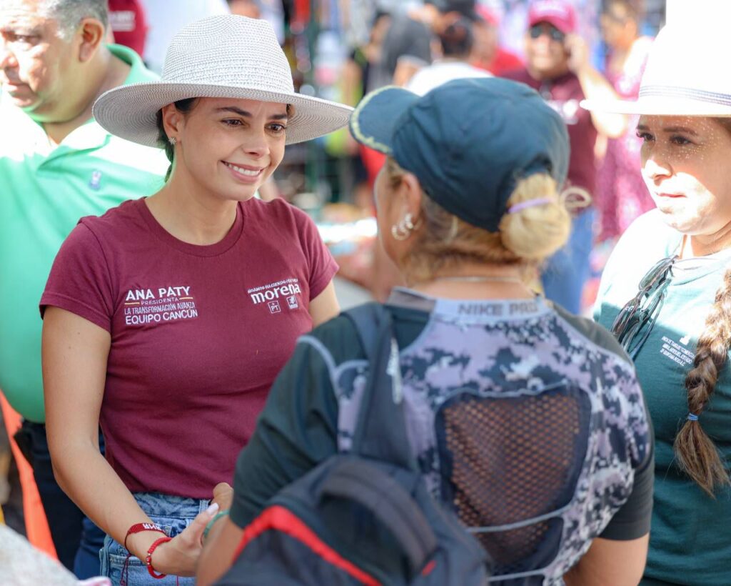 Cancún, Q. R., a 20 de mayo de 2024.- Con gran cariño y entusiasmo recibieron a la candidata a la presidencia municipal de Benito Juárez por la Coalición “Sigamos Haciendo Historia”, Ana Paty Peralta, durante su recorrido matutino por el tianguis de la Supermanzana 105, dónde negocio tras negocio fue saludando, escuchando y comprometiéndose por el progreso y bienestar de las familias cancunenses.