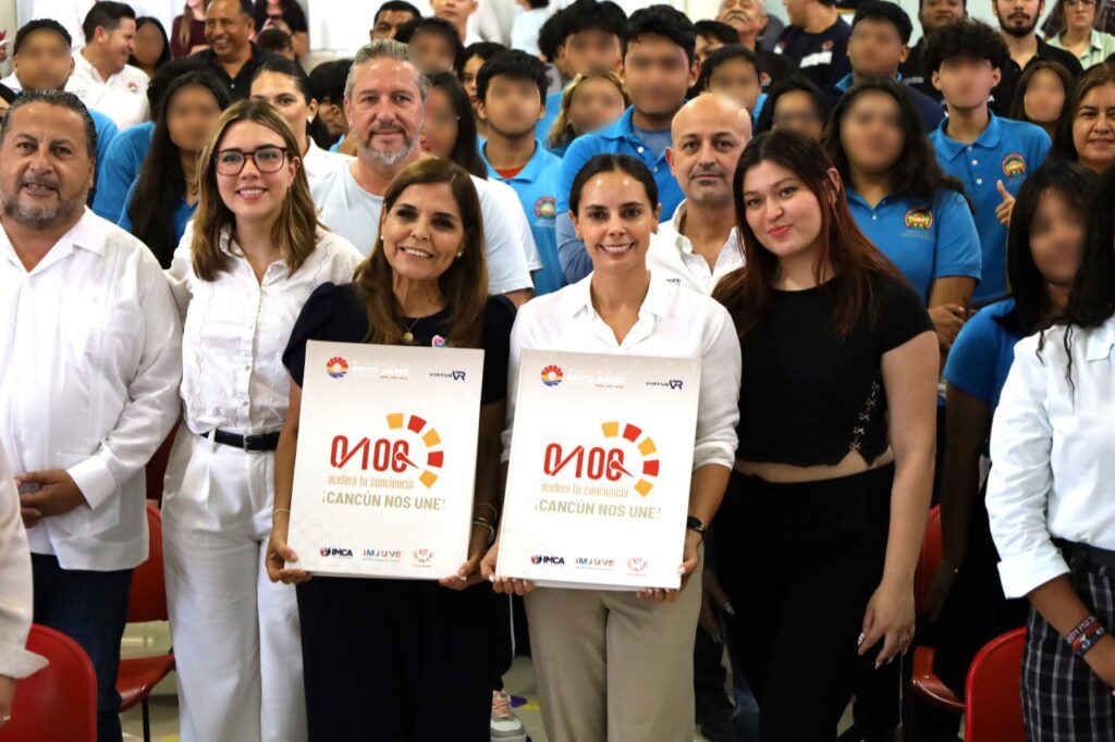 Cancún, Q.R., a 08 de julio de 2024.- “Desde hace tres meses hemos venido trabajando con este proyecto, llegando a más de 40 escuelas de nivel básico, medio superior y superior, beneficiando a más de 16 mil estudiantes. Estamos uniendo a Cancún bajo una visión clara: fortalecer nuestros valores y una cultura de paz con las nuevas generaciones de cancunenses”, enfatizó la Presidenta Municipal, Ana Paty Peralta, al clausurar el “Programa de Realidad Virtual de 0 a 100”, implementado por el Instituto Municipal Contra las Adicciones (IMCA) y el Instituto Municipal de la Juventud (IMJUVE).