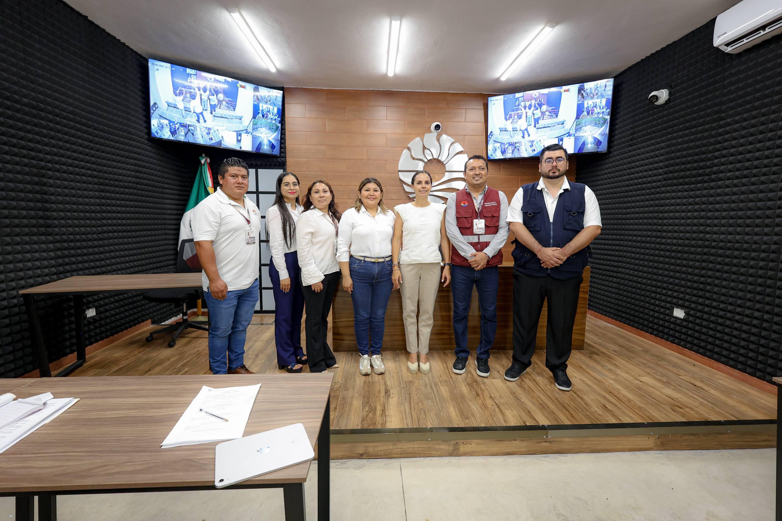 La Presidenta Municipal constató los ajustes que se realizan para colocar paneles de concentración de sonido para el audio y video, ya que se grabará mediante cámaras todo lo que suceda en la sala de juicios orales al momento de llevarse las audiencias.