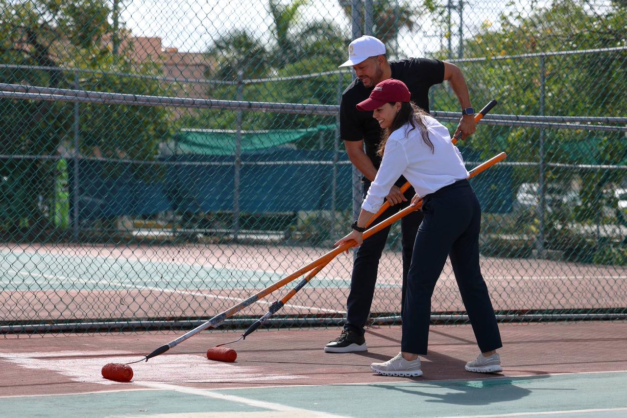 Cancún, Q. R., a 05 de marzo de 2026.- La Presidenta Municipal, Ana Paty Peralta, supervisó los trabajos de mantenimiento en la cancha de tenis del Campo Deportivo “8 de Octubre” de la Supermanzana 21, donde se podrá en marcha la primera Escuela Municipal de Tenis con clases gratuitas, siendo un proyecto pensado para la niñas, niños y adolescentes que a futuro serán un semillero de talentos deportivos.