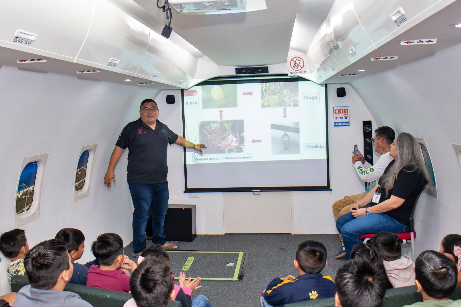 Como parte de las actividades prácticas, el artista Víctor Puga Narváez, de “Alas Mayas”, enseñó a las niñas y niños a dibujar paso a paso una mariposa monarca, además de realizar la observación directa de estructuras y ejemplares, lo que les permitió identificar características físicas claves de estas especies de forma lúdica y didáctica.