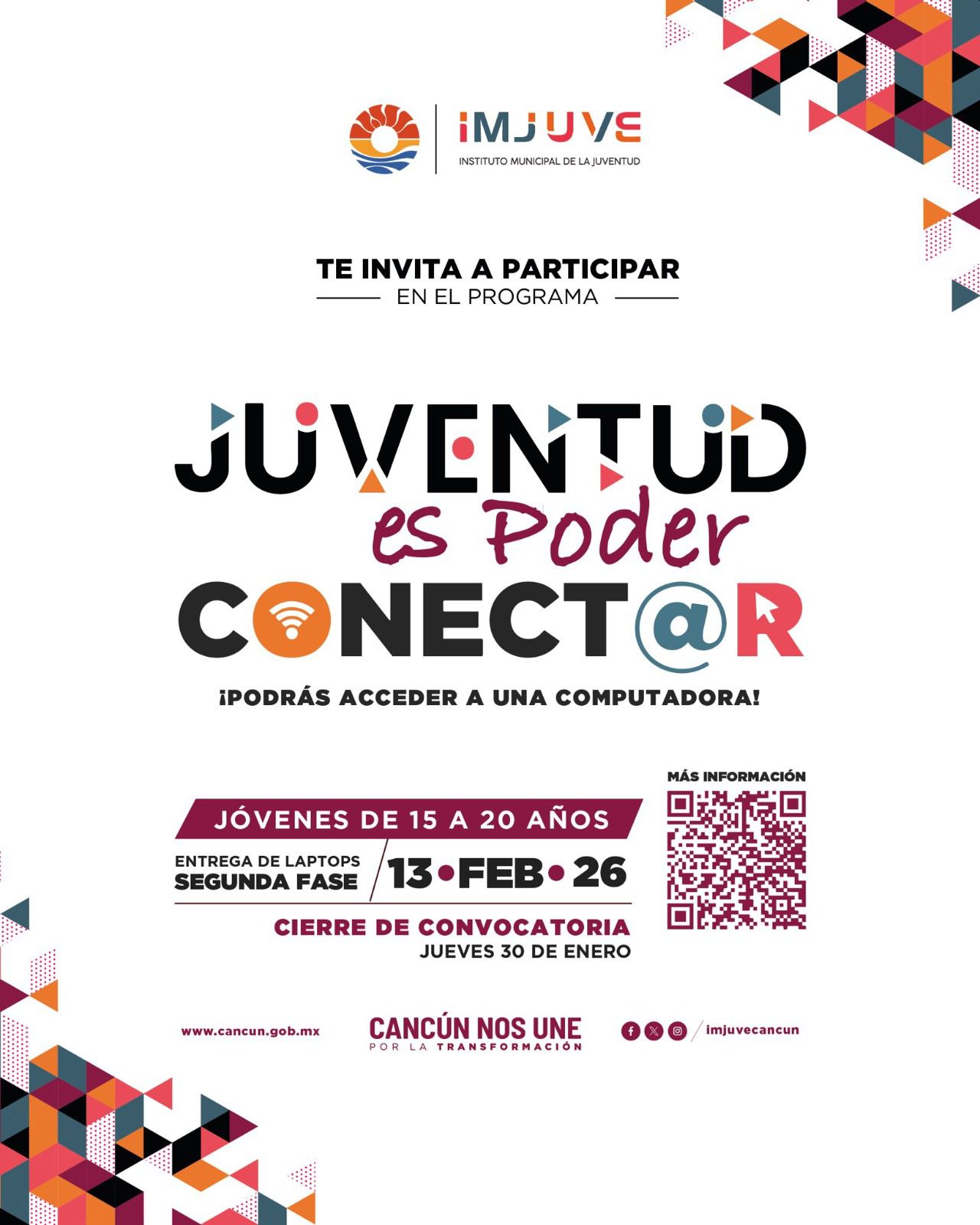 Cancún, Q. R., a 25 de enero de 2026.- Luego del éxito de la primera etapa, en la que se entregaron 191 laptops, el Ayuntamiento de Benito Juárez, a través del Instituto Municipal de la Juventud (IMJUVE), puso en marcha la segunda fase del programa “Juventud es Poder Conectar”, mediante la cual se otorgarán 159 equipos de cómputo a jóvenes cancunenses de entre 15 y 20 años que cursan el nivel medio superior en escuelas públicas, con el objetivo de fortalecer su desarrollo académico.