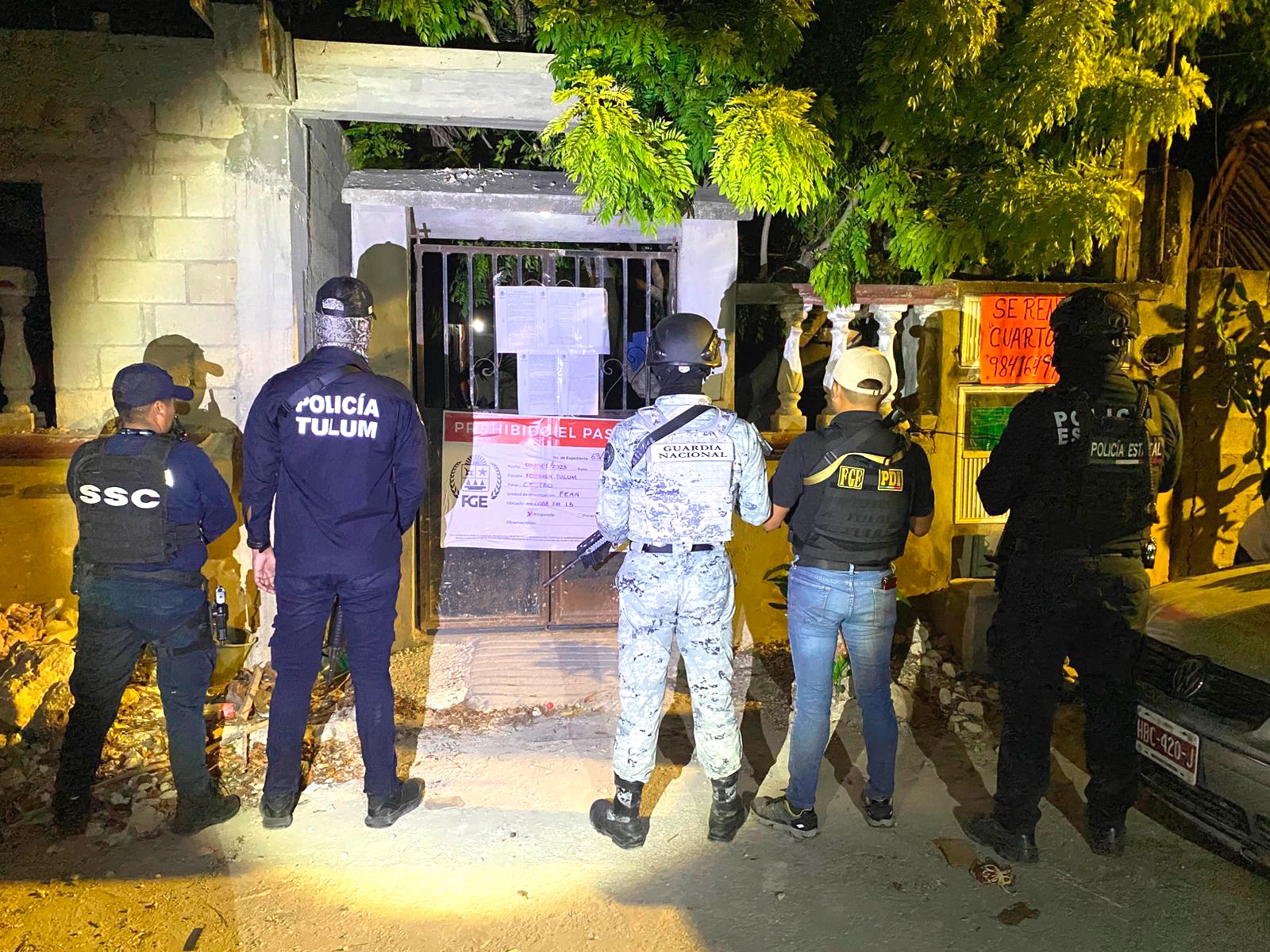 El último cateo fue ejecutado en un inmueble ubicado en la calle Venado entre Sian Kaan y Chanchén, de la colonia Ejidal, en el municipio de Tulum, donde aseguraron bolsas que contenían sustancia sólida circular de color negro, hierba seca de color verde, pastillas y sustancia granulada de color blanco.