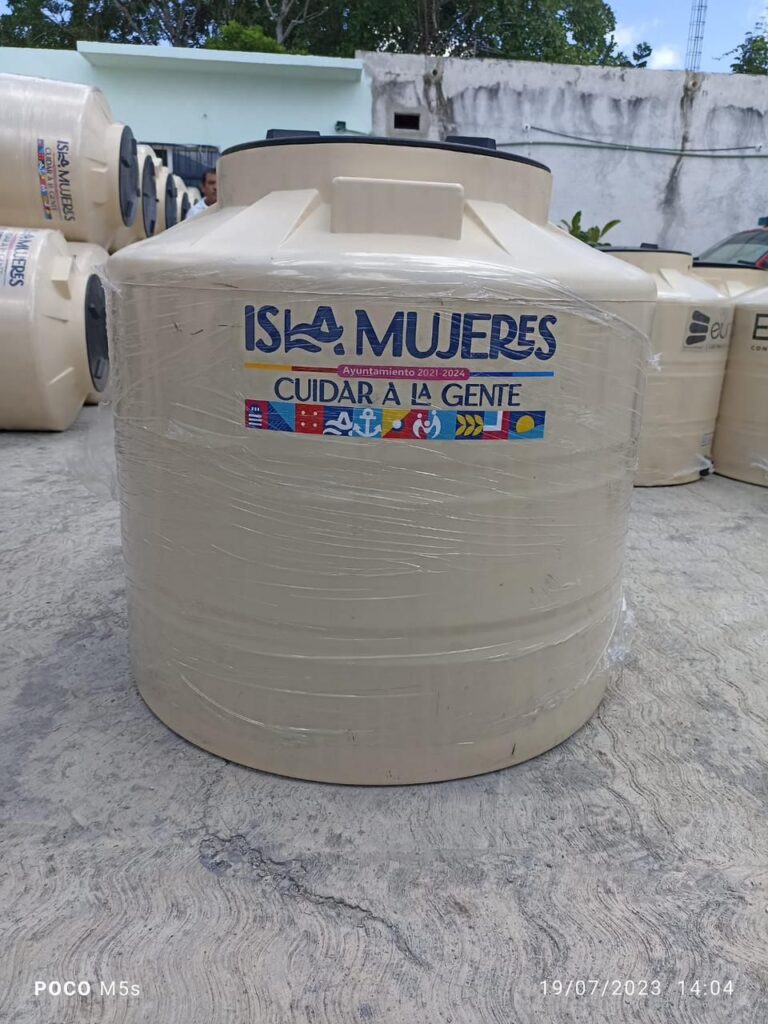 Isla Mujeres, Quintana Roo, 21 de julio de 2023.- Con la finalidad de mejorar la calidad de vida de las familias isleñas, ya están en camino a Isla Mujeres los tinacos pertenecientes al programa de subsidio de tinacos.