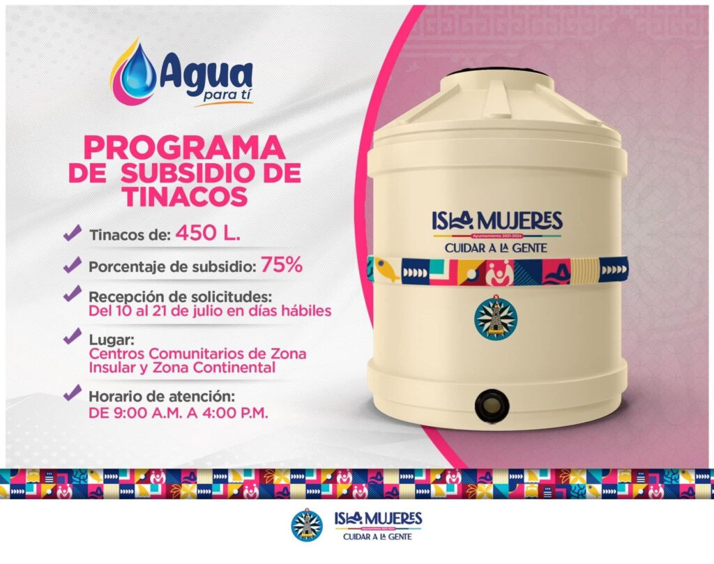 A través de este programa que impulsa la alcaldesa Atenea Gómez Ricalde, se apoyará a las familias isleñas que más lo necesitan para que puedan adquirir un tinaco con capacidad de 450 litros.