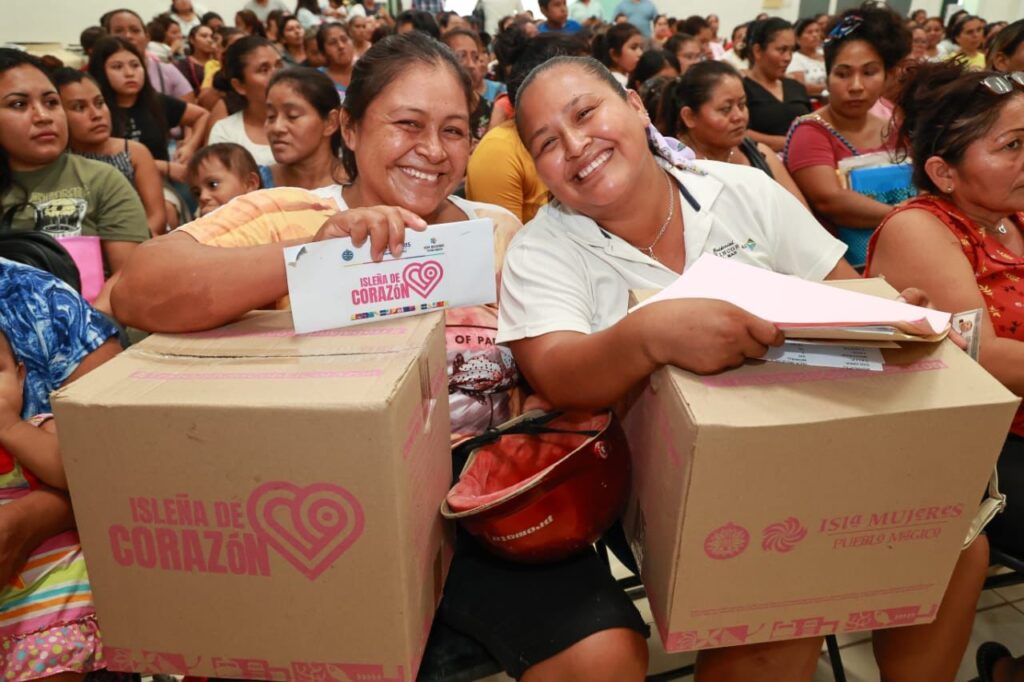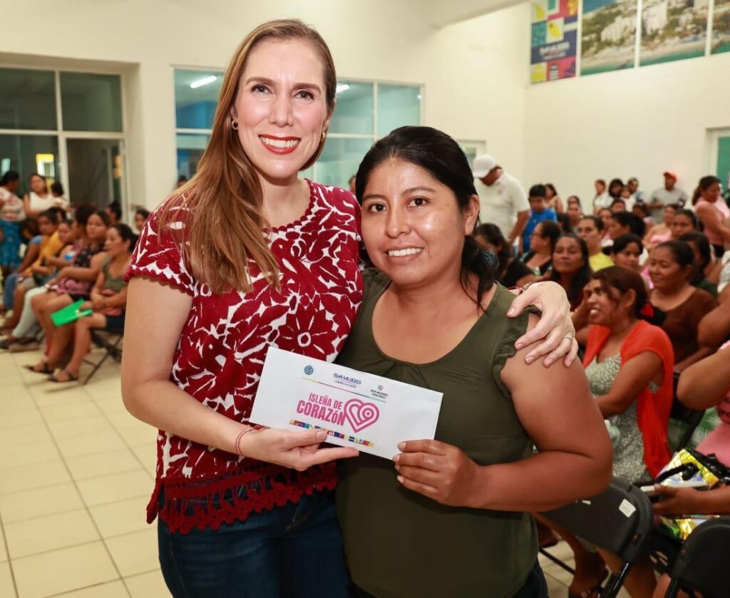 La alcaldesa isleña recalcó que desde que inició su Gobierno trabaja todos los días con el corazón para que las mujeres accedan a una mejor calidad de vida, con lo que se suma “Isleña de Corazón”, un programa que brinda apoyos económicos, a través de una tarjeta que pueden utilizar en reconocidos establecimientos comerciales, así como apoyos alimentarios con productos de la canasta básica, lo que contribuirá a mejorar su economía familiar.