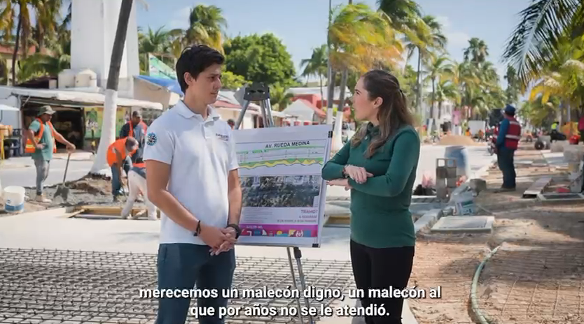 Isla Mujeres Quintana Roo 28 de Nero de 2026.- La Presidenta, Atenea Gómez Ricalde, superviso el inicio de la rehabilitación del malecón Rueda Medina.