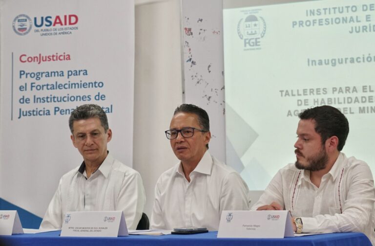 Cancún, Quintana Roo, a 23 de mayo de 2023. El titular de la Fiscalía General del Estado, Óscar Montes de Oca, inauguró el taller de capacitación para ministerios públicos, impartido por la Agencia de Estados Unidos para el Desarrollo Internacional…