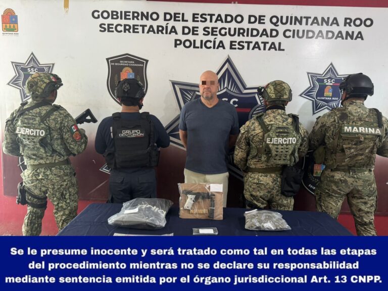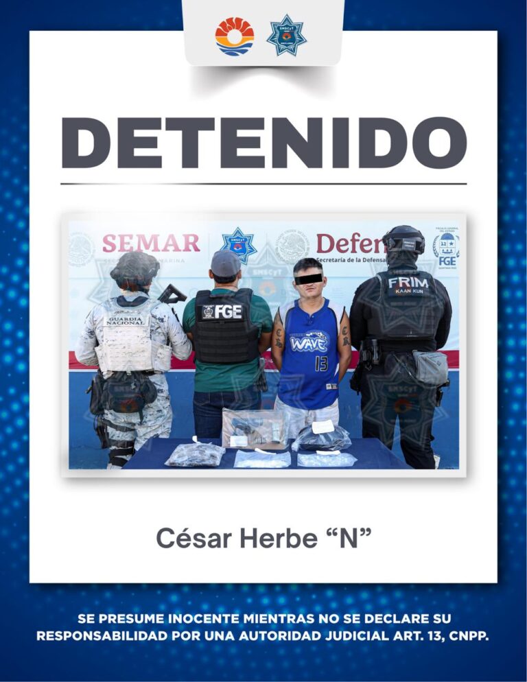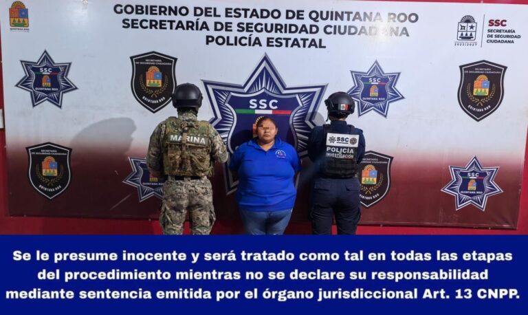 Cancún, Q. Roo., 15 de enero de 2026.– En una acción coordinada entre la Fiscalía General del Estado (FGE), la Guardia Nacional y la Secretaría Municipal de Seguridad Ciudadana y Tránsito (SMSCyT), se logró la detención de una persona del…