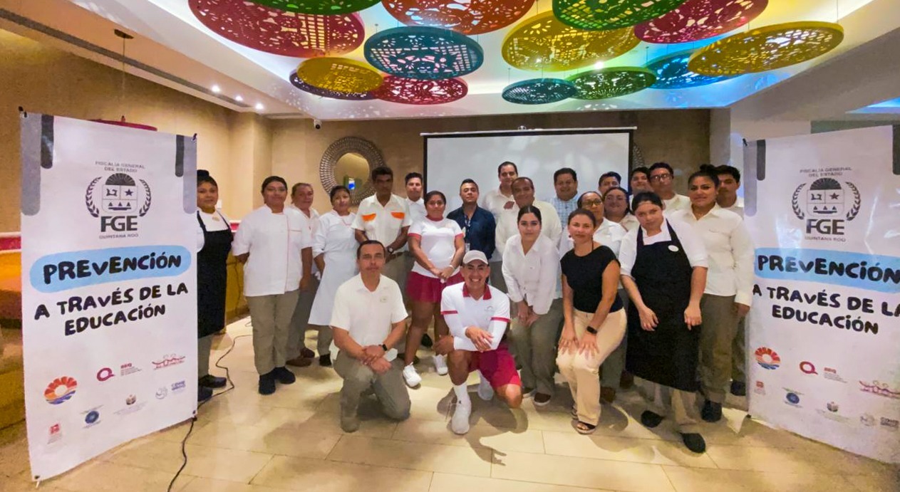 Benito Juárez.- Como parte de las acciones implementadas dentro del programa “Prevención a través de la educación”, en el que participan la Fiscalía General del Estado, Ayuntamiento de Benito Juárez, Secretaría de Educación y Asociaciones Civiles, el personal a cargo continúa ofreciendo conferencias informativas dirigidas a estudiantes, docentes, personal administrativo y de intendencia, así como a personal del sector hotelero.