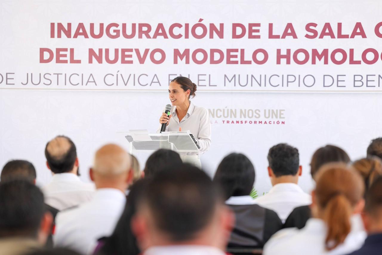 Cancún, Q. R., a 07 de noviembre de 2025.- “Hoy es un día importante porque damos paso a la transformación de Cancún a una ciudad de paz, armonía y respeto”, destacó la Presidenta Municipal, Ana Paty Peralta, al inaugurar la sala oral del nuevo Modelo Homologado de Justicia Cívica en Benito Juárez, y con ello, se convierte en el primer municipio de Quintana Roo en sumarse a ese esquema, para dar atención integral a los infractores y se promoverá una cultura de la legalidad.