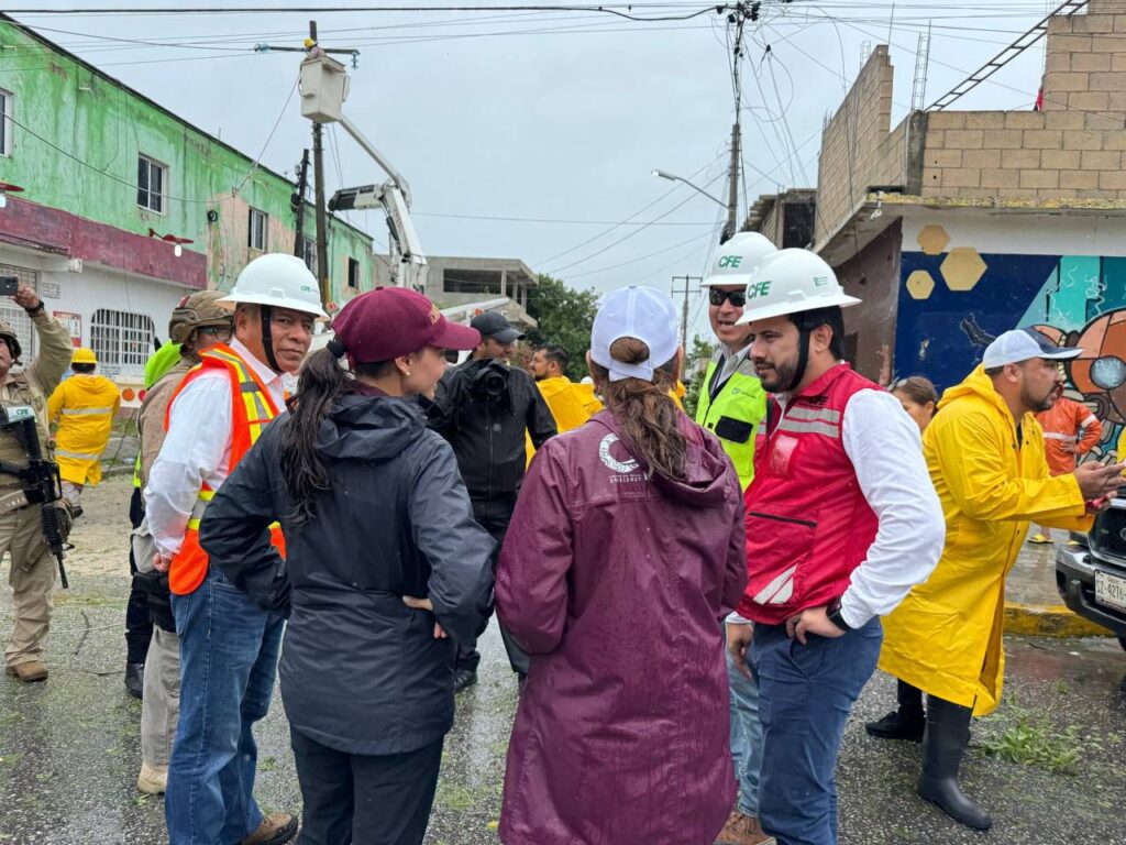 “Cancunenses, el fenómeno hidrometeorológico se aleja de nuestras costas como huracán categoría 1, pero seguimos con los remanentes y nubosidades, por lo que estamos trabajando de forma coordinada con los tres órdenes de gobierno para atender los diferentes reportes”, expresó al supervisar la ciudad junto a la gobernadora Mara Lezama y diversas autoridades.
