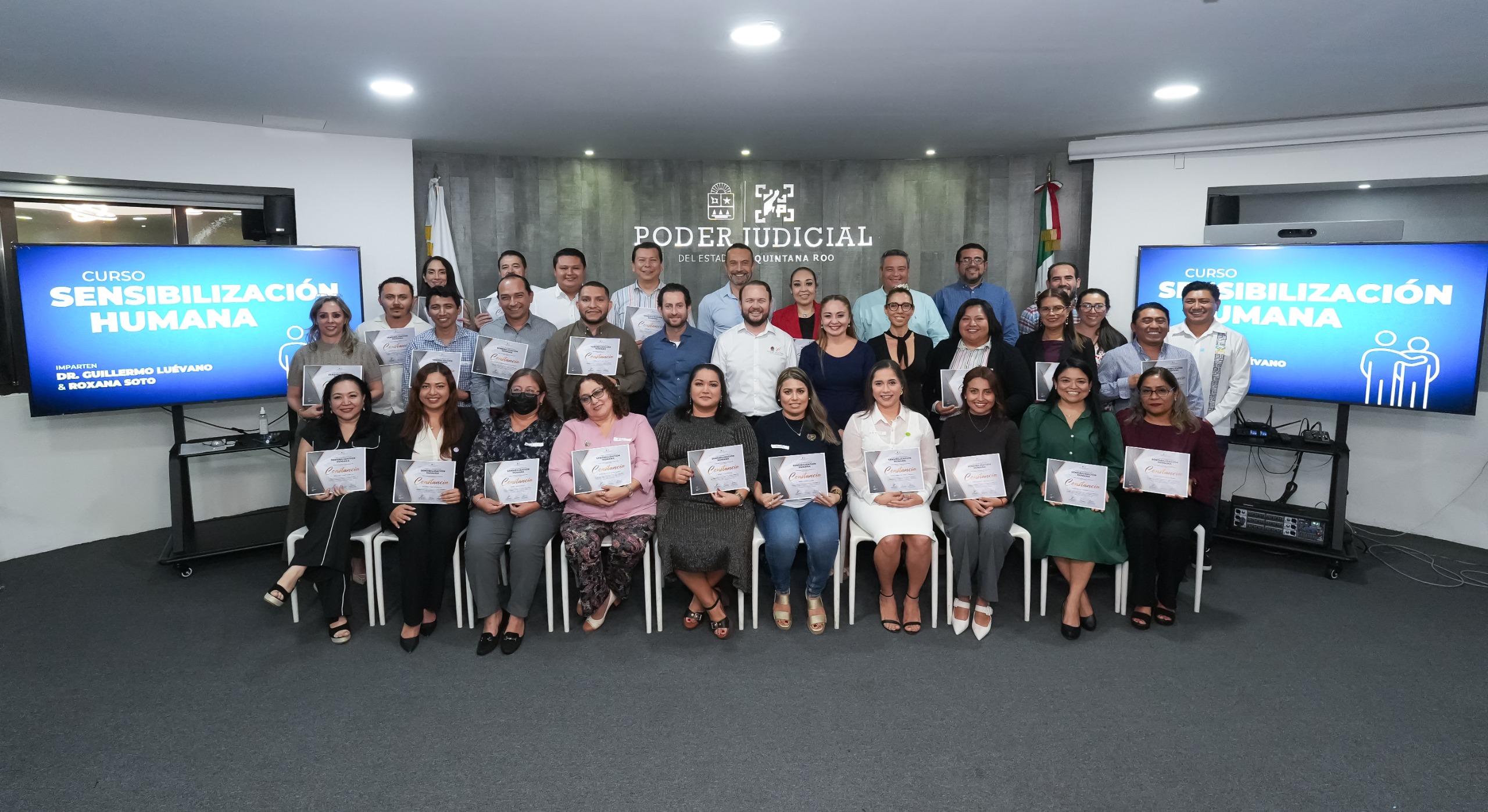 Cancún, Quintana Roo.- Con la entrega de constancias a las y los participantes, concluyó el curso de capacitación en Sensibilización Humana, dirigido a personas juzgadoras, cuyo objetivo es fortalecer sus capacidades para reconocer, comprender y valorar la diversidad humana en todas sus formas, promoviendo actitudes de empatía, respeto e inclusión en el ejercicio de la función jurisdiccional.