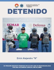 Benito Juárez.- La Fiscalía General del Estado de Quintana Roo, en colaboración con su homóloga del estado de Querétaro, cumplimentó una orden de aprehensión en contra de José Guadalupe “N”, alias “Sargento”, investigado por su presunta relación en hechos posiblemente constitutivos de los delitos de homicidio calificado y homicidio calificado en grado de tentativa, en agravio de dos víctimas del sexo masculino, de identidad reservada.