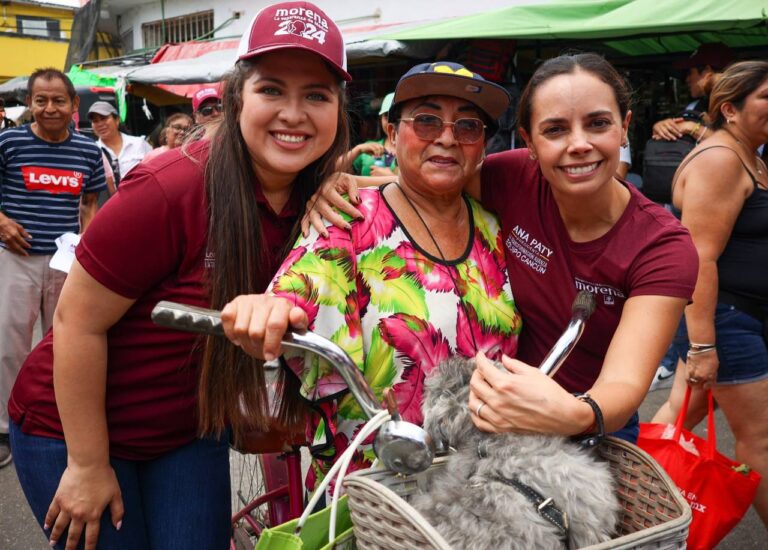 Cancún, Q. R., a 25 de abril de 2024.- La abanderada por Morena, PT y PVEM, Ana Paty Peralta, con la alegría que la caracteriza, recorrió el tianguis de la Supermanzana 94 para escuchar directamente a las y los ciudadanos. …