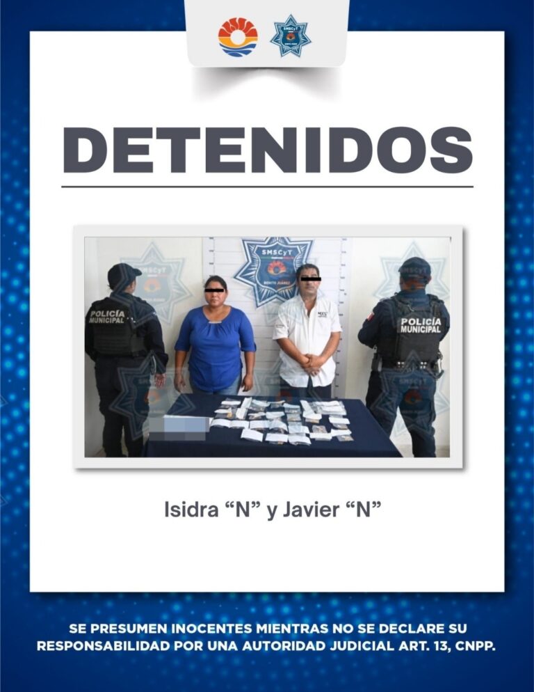 Cancún, Q. Roo., a 10 de marzo de 2026.– Como parte del Operativo Blindaje Cancún, en acción coordinada con la Fiscalía General del Estado (FGE) y la Guardia Nacional, la Policía Cancún detuvo a un hombre y una mujer por…
