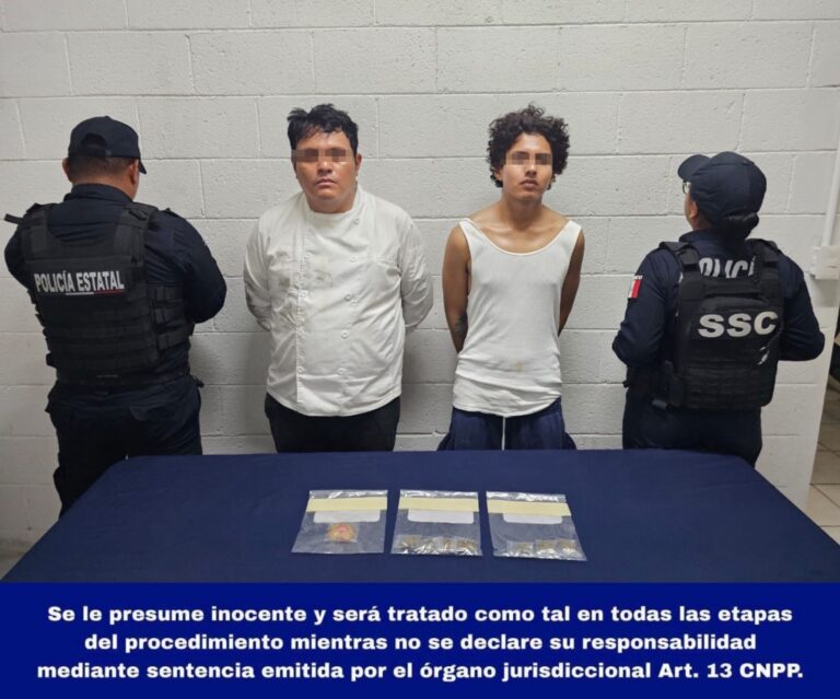 Durante recorridos pedestres de vigilancia, con motivo del operativo “Turista Seguro”, elementos de la Secretaría de Seguridad Ciudadana observaron a dos masculinos que intercambiaban bolsitas de plástico transparente con hierba seca de color verde, con características similares a la marihuana.…