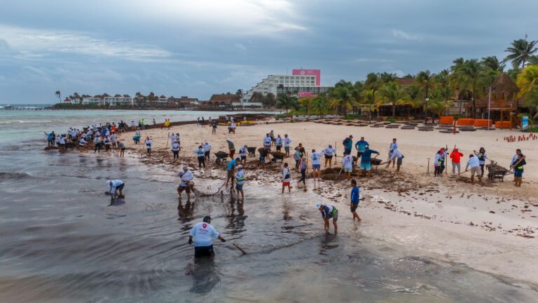 Gobierno de Isla Mujeres no baja la guardia ante el recale atípico de sargazo en Playa Norte
