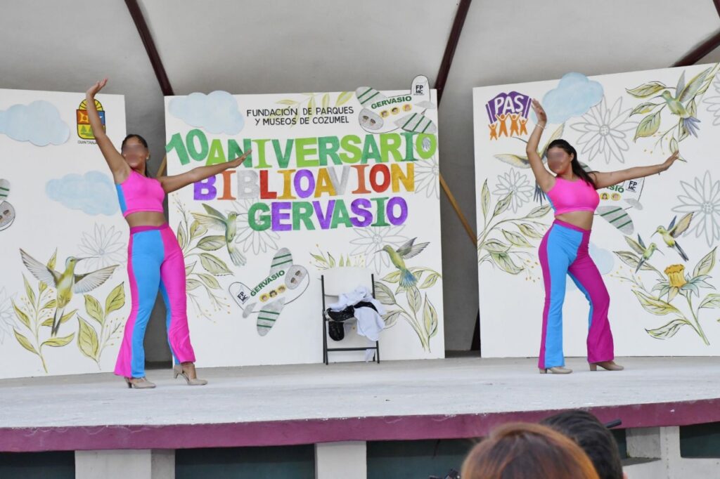 Cozumel.- La Fundación de Parques y Museos de Cozumel (FPMC) celebró el décimo aniversario del BiblioAvión Gervasio, una biblioteca digital instalada en el fuselaje de un avión, que se ha posicionado como espacio de aprendizaje y convivencia para la comunidad cozumeleña.