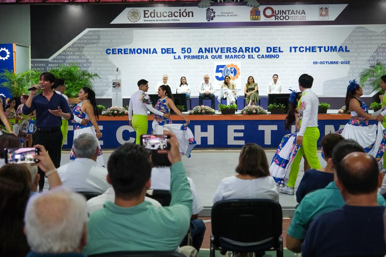 Chetumal.- Con la presencia de la gobernadora Mara Lezama Espinosa y el director general del Tecnológico Nacional de México, Ramón Jiménez López, el Instituto Tecnológico de Chetumal celebró su 50 aniversario de fundación, consolidándose como una de las instituciones de educación superior más emblemáticas del sur del país y pilar en la formación profesional de generaciones que han contribuido al desarrollo de Quintana Roo.