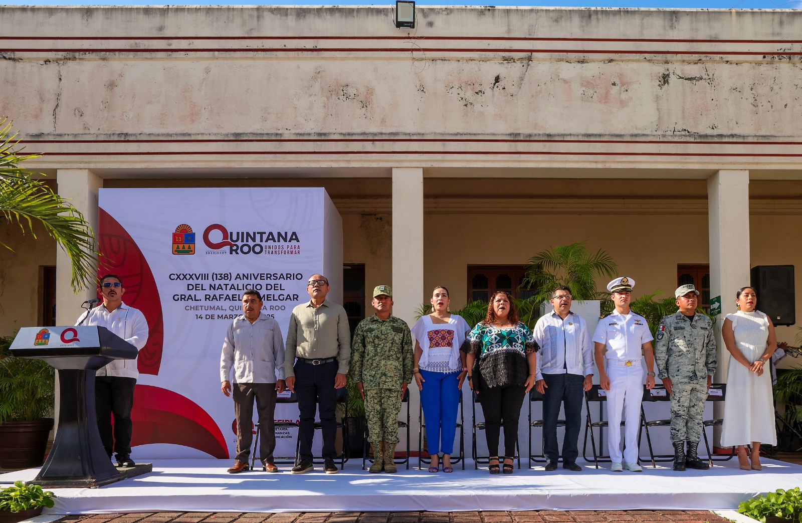 Chetumal.- Con una ceremonia cívica, el Gobierno del Estado, a través de la Secretaría de Finanzas y Planeación (SEFIPLAN), conmemoró la mañana de este viernes, en la capital del estado, el 138 aniversario del natalicio del general Rafael E. Melgar Andrade, quien gobernó el Territorio Federal de Quintana Roo de 1935 a 1940 y reconocido como forjador de la entidad.