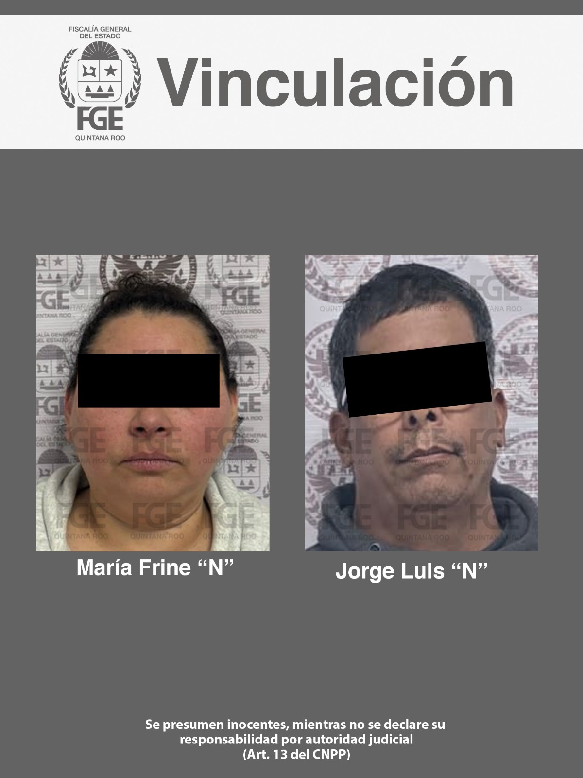 Benito Juárez.- Tras analizar los datos de prueba proporcionados por la Fiscalía General del Estado, a través de la Fiscalía Especializada en Combate a los Delitos de Secuestro y Extorsión, un Juez de Control dictó la vinculación a proceso en contra de María Frine “N” y Jorge Luis “N”, por su probable participación en hechos posiblemente constitutivos del delito de extorsión, en perjuicio de una víctima de identidad reservada.