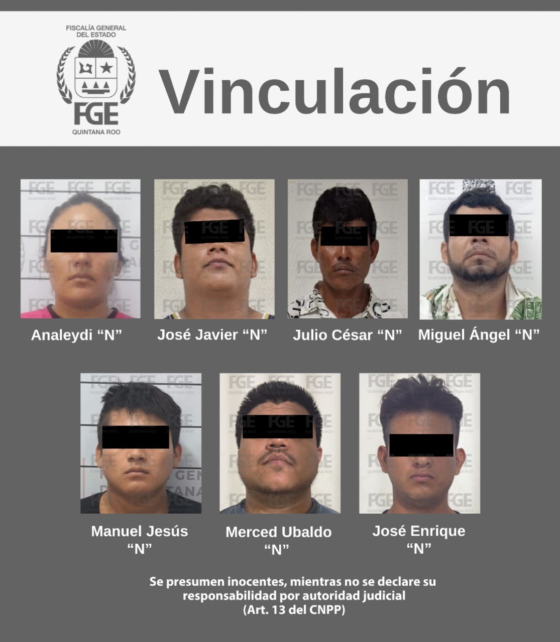 Playa del Carmen.- La Fiscalía General del Estado informa que, tras aportar los datos de prueba correspondientes, jueces de Control dictaron, por separado, el auto de vinculación a proceso para seis hombres y una mujer, por su probable relación en hechos posiblemente constitutivos de delitos contra la salud en su modalidad de narcomenudeo, en los municipios de Playa del Carmen, Cozumel y Tulum.