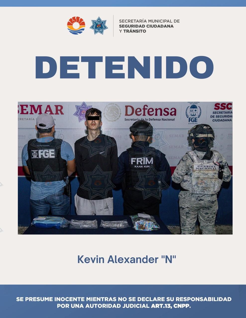 Por estos hechos, Kevin Alexander “N” fue detenido y puesto a disposición de la Fiscalía General del Estado para los trámites legales conducentes.