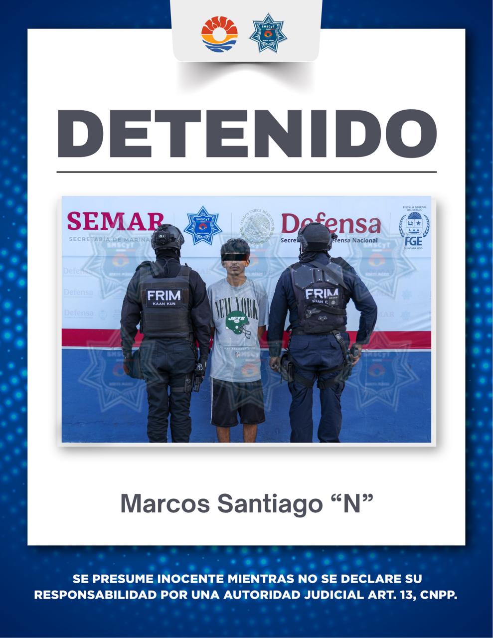 El detenido fue identificado como Marcos Santiago “N”, de 18 años de edad, quien fue asegurado cuando oficiales realizaban labores de vigilancia en la Supermanzana 251 y se percataron de un masculino que conducía una motocicleta marca Italika, modelo Z250, color negro, sin placa de circulación, a exceso de velocidad y zigzagueando, poniendo en riesgo su integridad física y la de otros conductores.