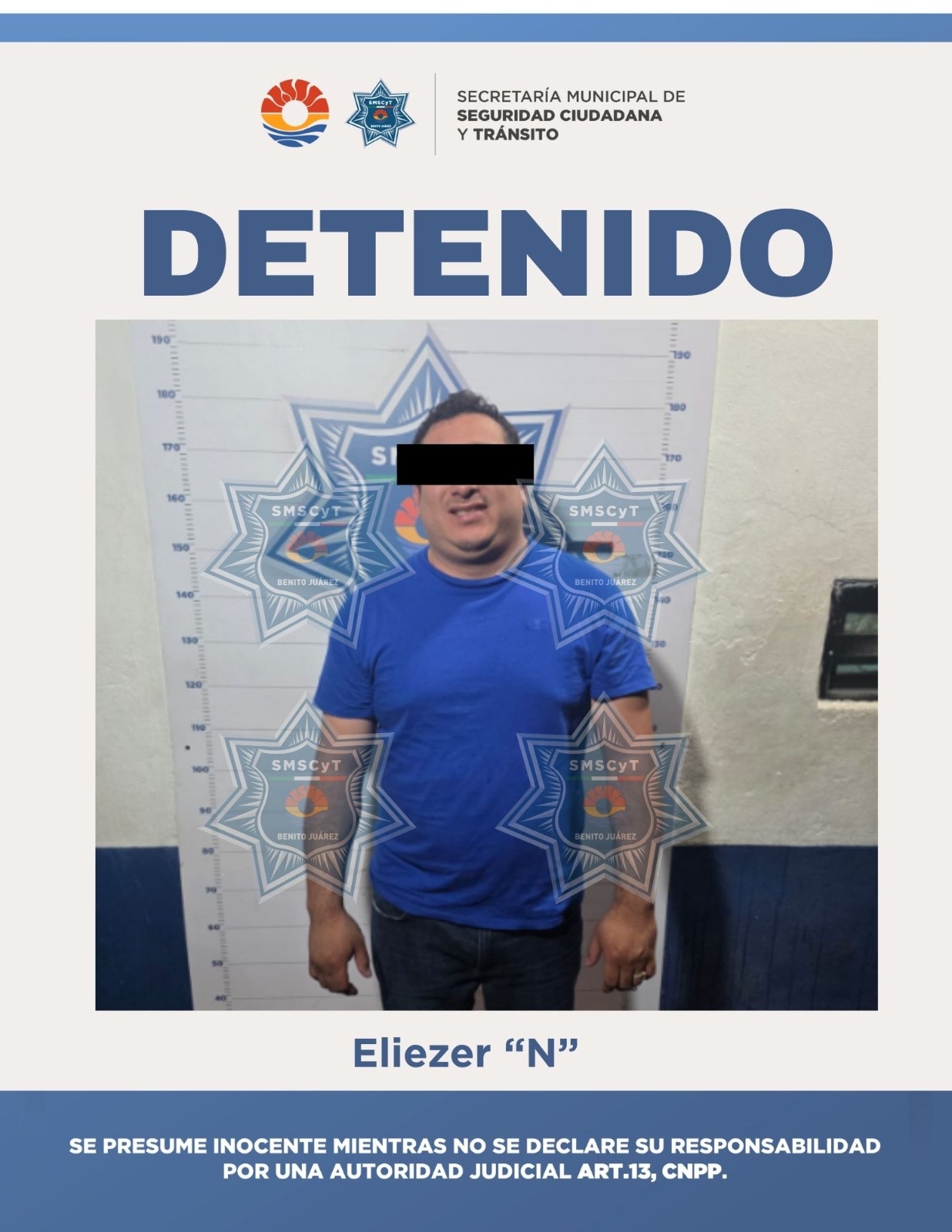 Cancún, Q. Roo, 23 de octubre de 2025. – Elementos de la Dirección de Tránsito detuvieron a Eliezer “N”, de 33 años de edad, por su presunta participación en el delito de encubrimiento por receptación, al circular en un vehículo con reporte de robo.