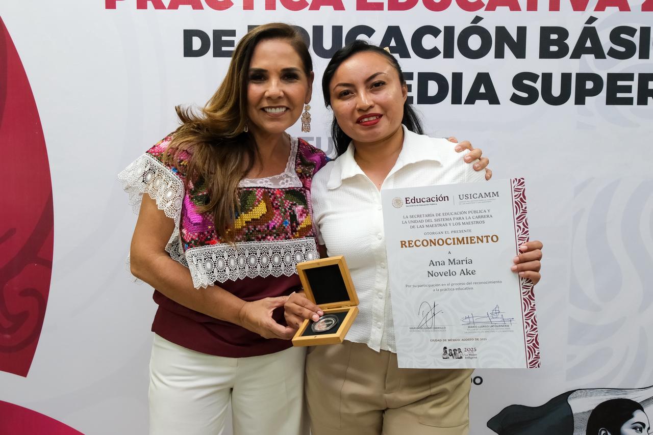 Chetumal.- En un acto de reconocimiento a la labor del magisterio, la gobernadora Mara Lezama Espinosa encabezó la entrega de medallas y reconocimientos a la práctica educativa 2025 para docentes de educación básica y media superior, evento en el que afirmó que el magisterio es parte fundamental de la historia del estado.