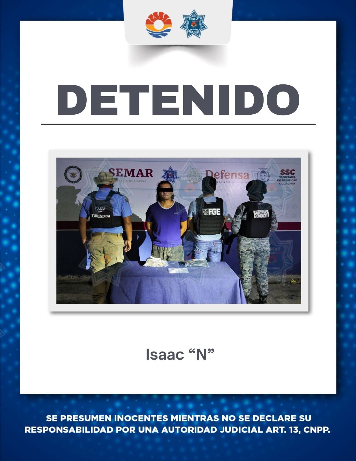 Por lo anterior, Isaac “N”, de 27 años de edad, fue detenido y puesto a disposición de la autoridad correspondiente para los fines legales conducentes.