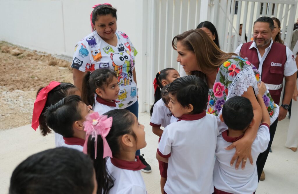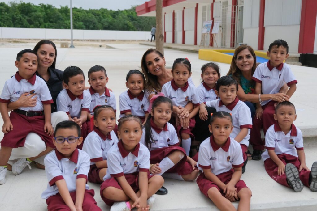 La gobernadora de Quintana Roo explicó que con dinero del pueblo se construyeron y equiparon 4 aulas para 140 estudiantes por turno, dando acceso a la educación básica a 280 niñas y niños de este fraccionamiento.