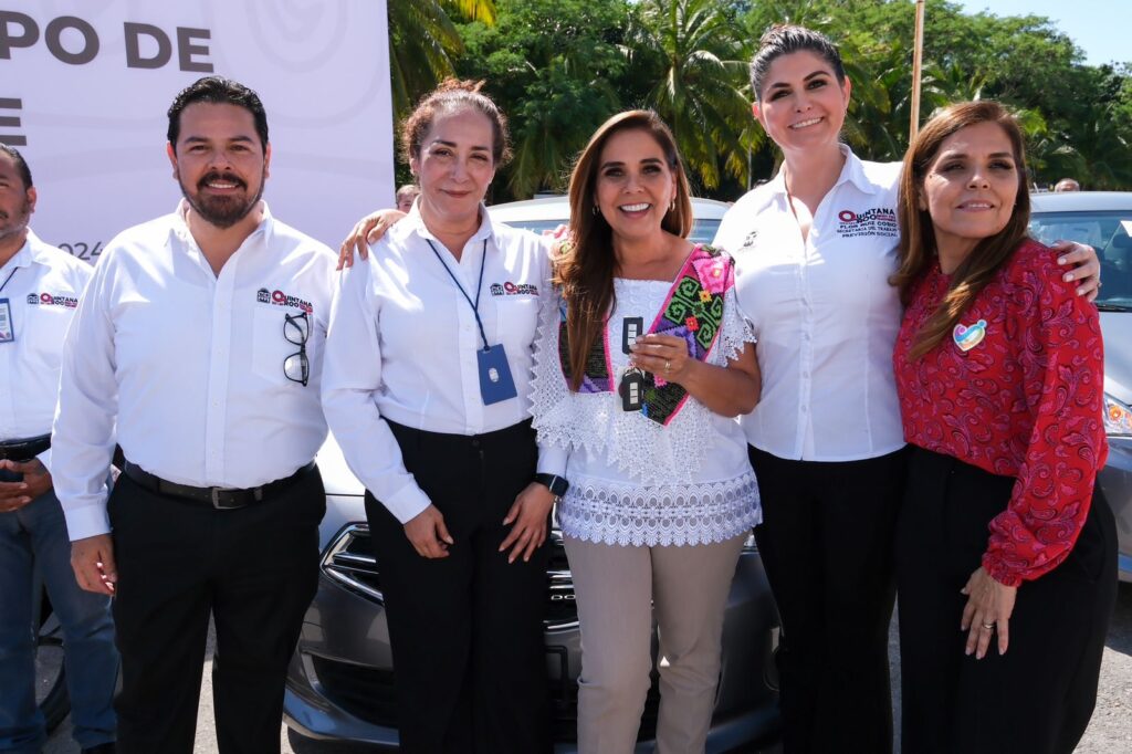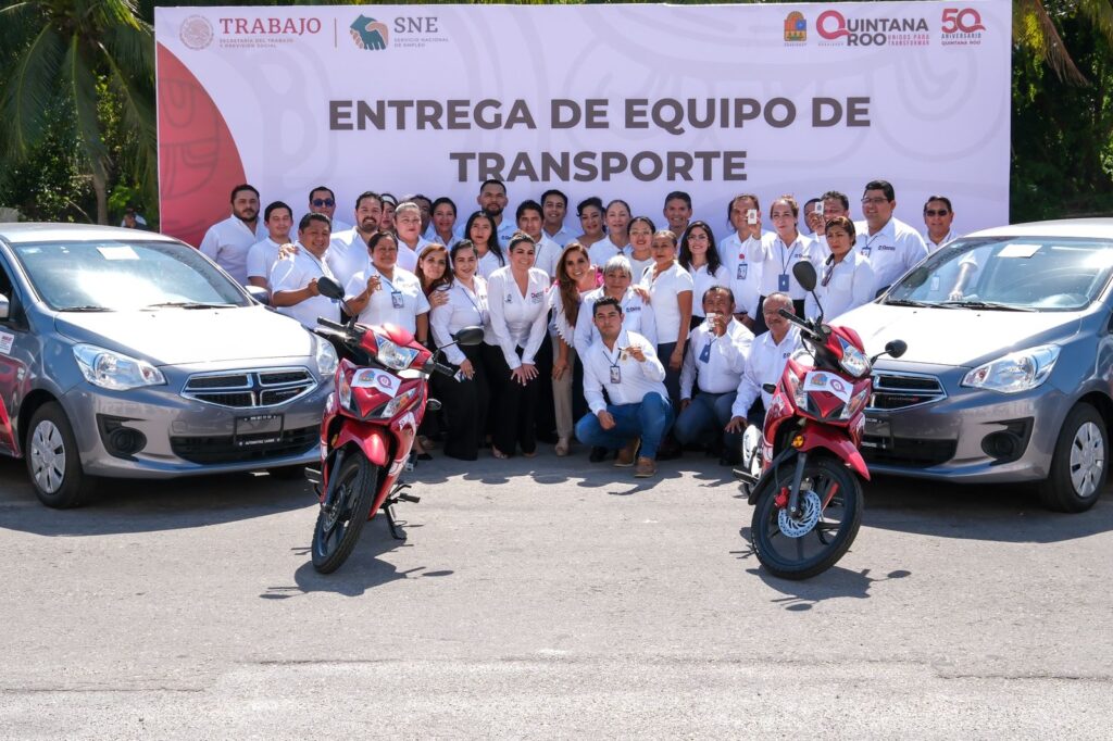 Chetumal.- La gobernadora Mara Lezama Espinosa entregó vehículos para fortalecer el trabajo continuo de la Oficina del Servicio Nacional de Empleo en sus tres unidades regionales de Chetumal, Playa del Carmen y Cancún, evento organizado por la Secretaría del Trabajo y Previsión Social.
