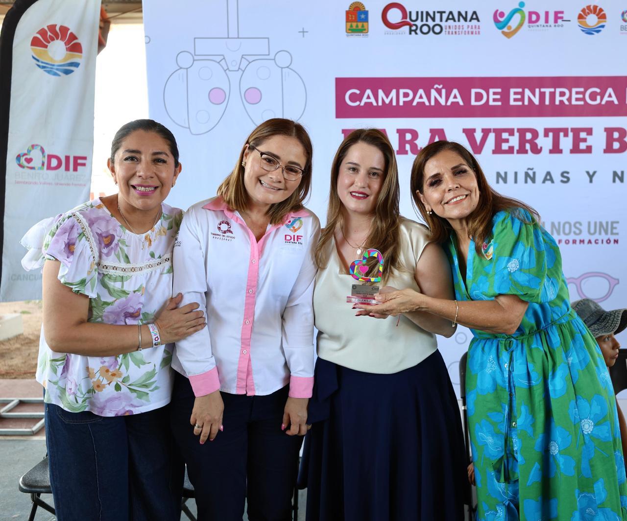 Chetumal.- Con el objetivo de mejorar la salud visual y el bienestar de las y los quintanarroenses, la presidenta honoraria del DIF Quintana Roo, Verónica Lezama Espinosa, en conjunto con la Fundación CIMA realizaron la entrega de 670 lentes graduados a niñas y niños de educación primaria de diversos municipios del estado.