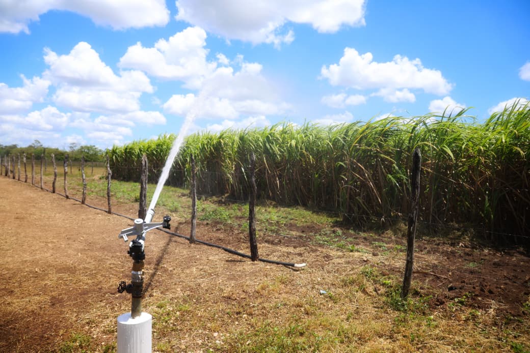 El sistema de riego consiste en la tecnificación de un pozo profundo equipado con bomba sumergible de 60 hp, accionada con 128 paneles solares de 610 watts, para un sistema de aspersión fija que beneficiará 50 hectáreas de caña de azúcar y pasto, en apoyo directo a un productor.