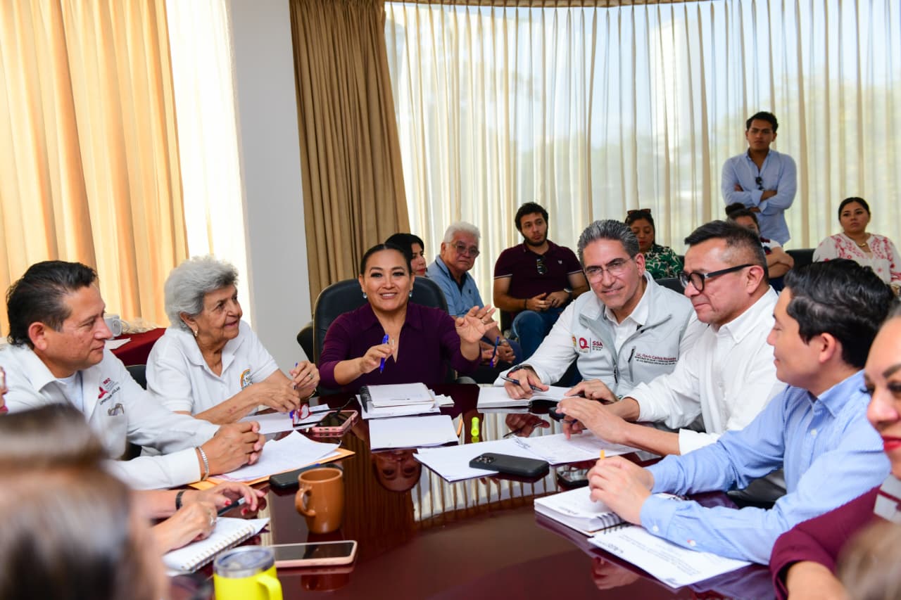 Cancún.- La secretaria de Educación, Elda Xix Euán, y el secretario de Salud, Flavio Carlos Rosado, sostuvieron una reunión de trabajo con jefes de sector de Preescolar y de Educación Especial de la zona norte, abordando temas prioritarios para el fortalecimiento de la salud de alumnas y alumnos, así como de la salud mental de las maestras y maestros.