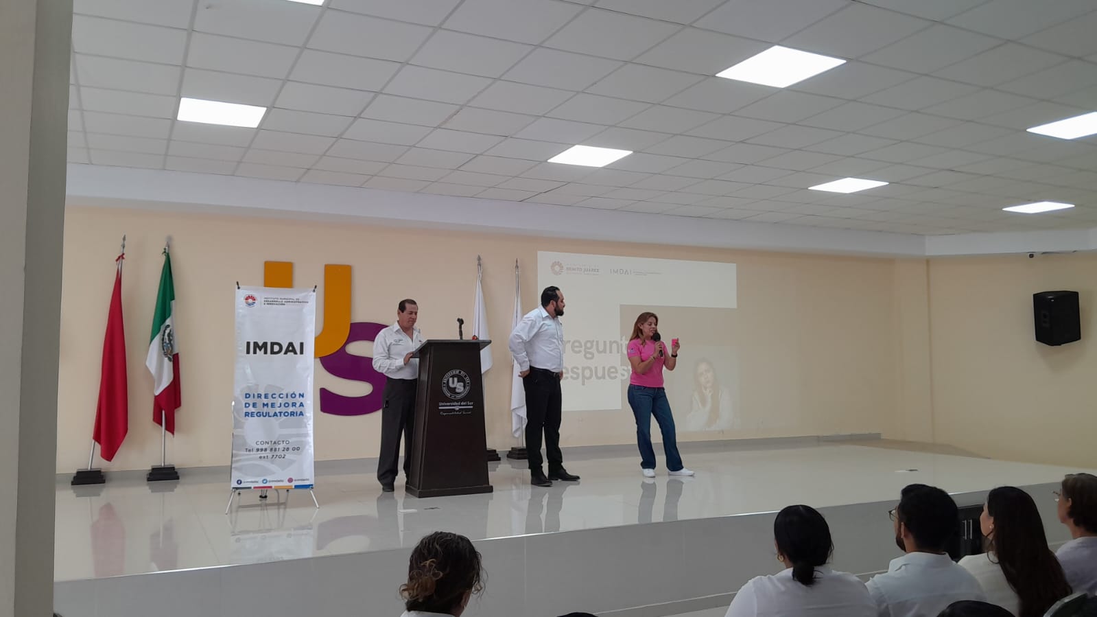 Cancún, Q. R., a 07 de agosto de 2025.- Por segunda ocasión, el Ayuntamiento de Benito Juárez, a través del Instituto de Desarrollo Administrativo e Innovación (IMDAI), realizó un foro informativo en un centro escolar de nivel superior, como fue en la Universidad del Sur, para presentarles a 142 estudiantes asistentes, los trámites y servicios que pueden llevar a cabo en dicha institución.