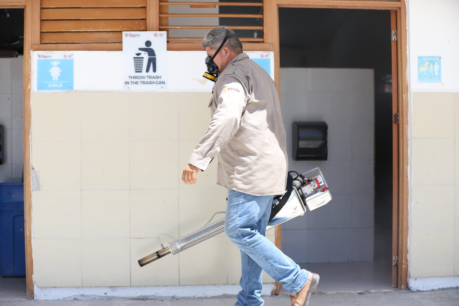 Isla Mujeres, Quintana Roo, 19 de agosto de 2024.-En el marco de la Segunda Jornada Nacional de la Lucha contra el Dengue, el Gobierno de Isla Mujeres que encabeza la alcaldesa Atenea Gómez Ricalde, a través de la Dirección de Salud, en coordinación con la Secretaría de Salud de Quintana Roo y el área de Vectores de la Jurisdicción Sanitaria Número 2, realiza termonebulizaciones en las escuelas de todos los niveles educativos del municipio.