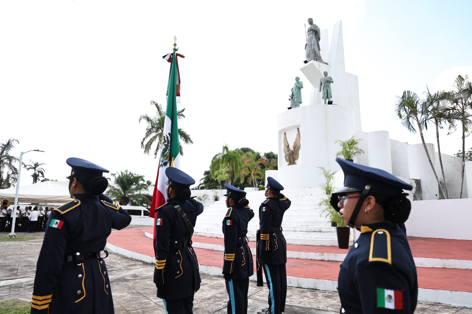 La jornada inició en la Plaza Cívica frente al Palacio de Gobierno, donde el personal de XI Zona Naval realizó el izamiento de la Bandera Nacional a toda asta.