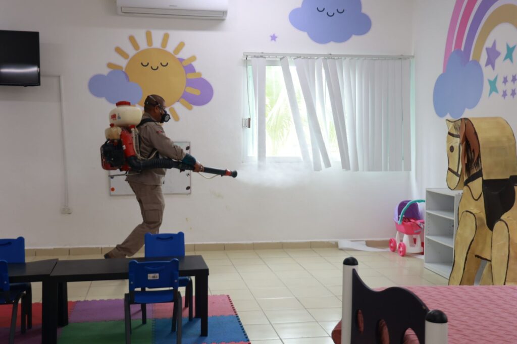 Al respecto, la Directora de Salud de Isla Mujeres, Teresa Gómez Herrera, explicó que en la Zona Continental ya se nebulizaron el Colegio de Bachilleres Plantel Ciudad Mujeres, la escuela primaria “Enrique Estrella Oxté” y la secundaria técnica “Islas Hermanas Ciudad Mujeres”, estando aún pendientes de nebulizar el preescolar del Centro Comunitario y el Centro Comunitario, así como Francisco May y la Zona Agrícola, programados para mañana martes.
