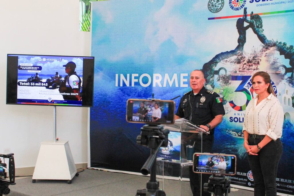 Playa del Carmen, Solidaridad, 14 de agosto del 2023.- Durante su informe semanal, la presidenta Lili Campos resaltó que para el restablecimiento del servicio eléctrico en Villas del Sol el gobierno municipal dispuso fuerte vigilancia a cargo de Seguridad Pública a fin de evitar disturbios, apoyó en la instalación de un transformador provisional y contribuyó con las brigadas a fin de dar solución del problema de manera más rápida.