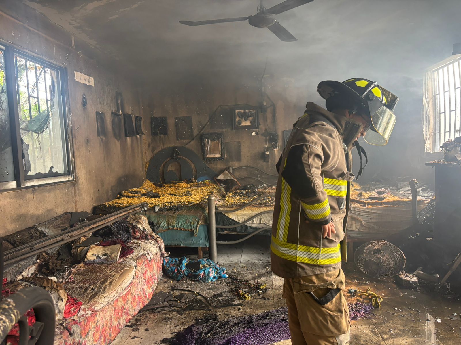 El personal arribó y encontró en libre combustión un predio de mampostería de 4 x 3 metros y una palapa de 5 x 5 metros en el patio trasero, ambas estructuras consumidas en su totalidad.