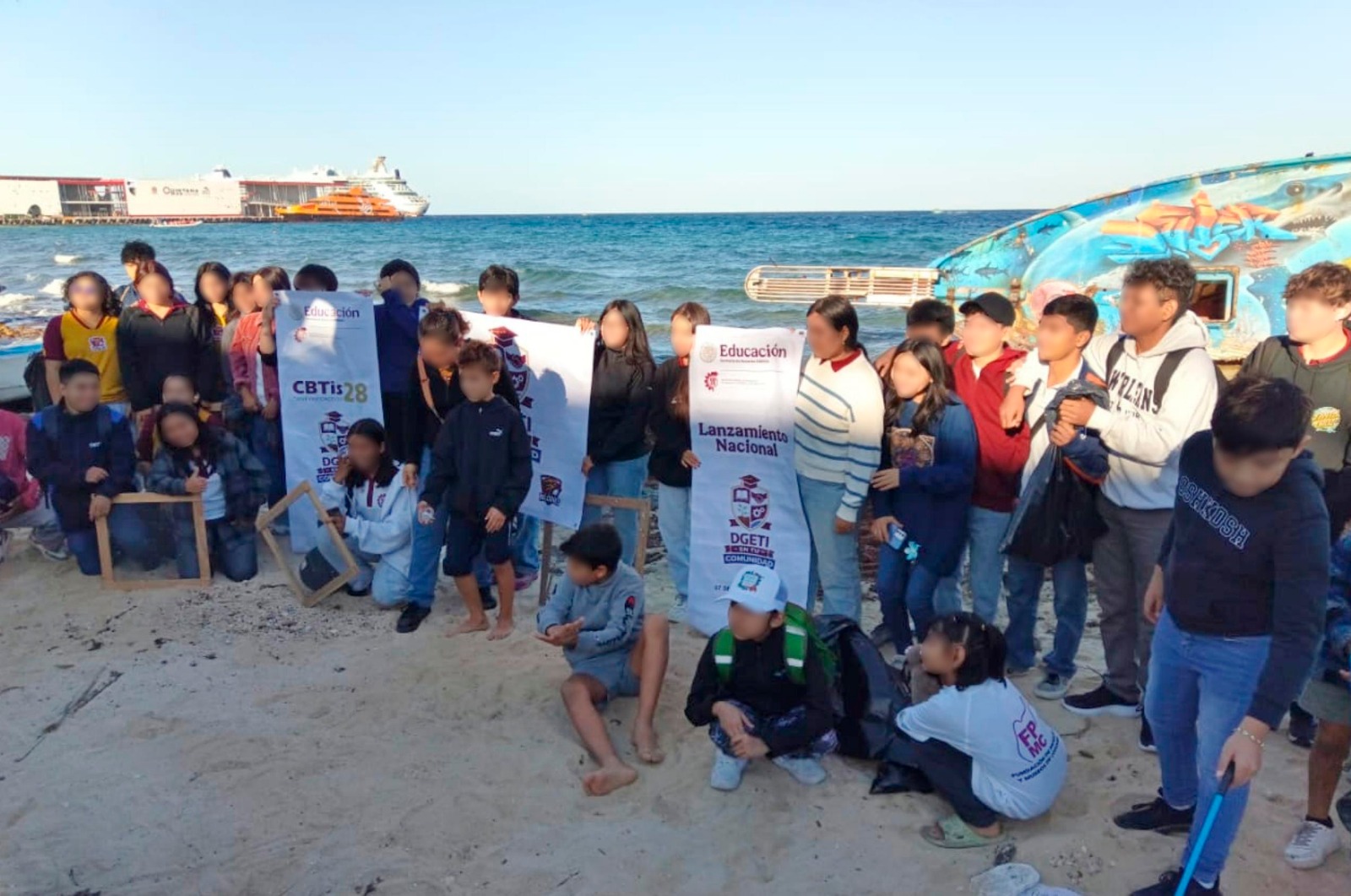 Cozumel.- La Fundación de Parques y Museos de Cozumel (FPMC) llevó a cabo una jornada de limpieza de playas en la que participaron el grupo “Jóvenes por la Conservación” y estudiantes del CBTIS No. 28 “José Vasconcelos”, como parte del lanzamiento de la campaña “DGETI en tu Comunidad” que fomenta la participación y el compromiso con las comunidades en todo el país.