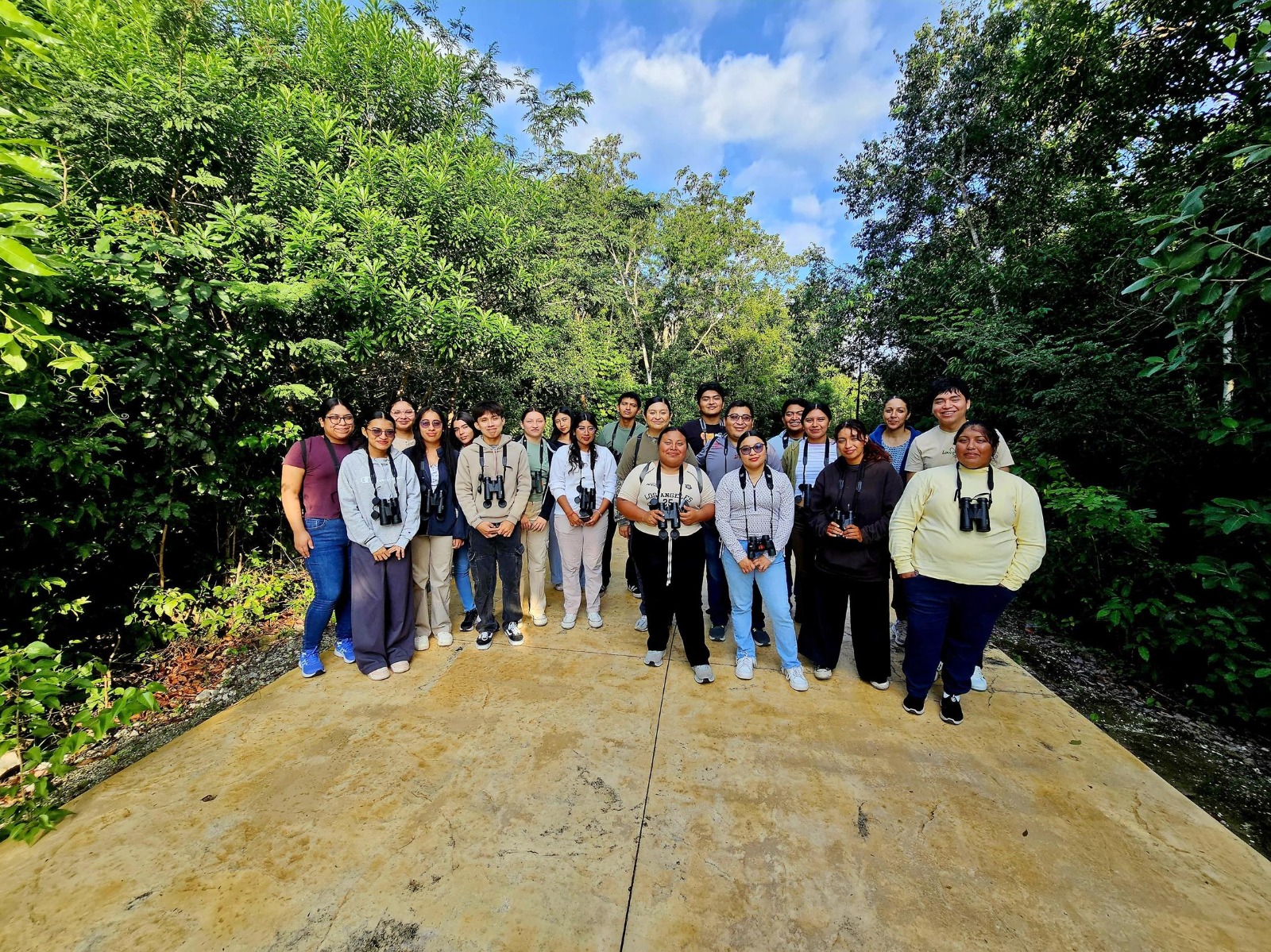 Durante la actividad, 20 estudiantes del quinto semestre de la carrera de Turismo recorrieron el Parque Urbano Corazón para conocer la importancia de los ecosistemas urbanos como refugio para aves residentes, migratorias, endémicas y subespecies endémicas que distinguen a Cozumel a nivel regional.
