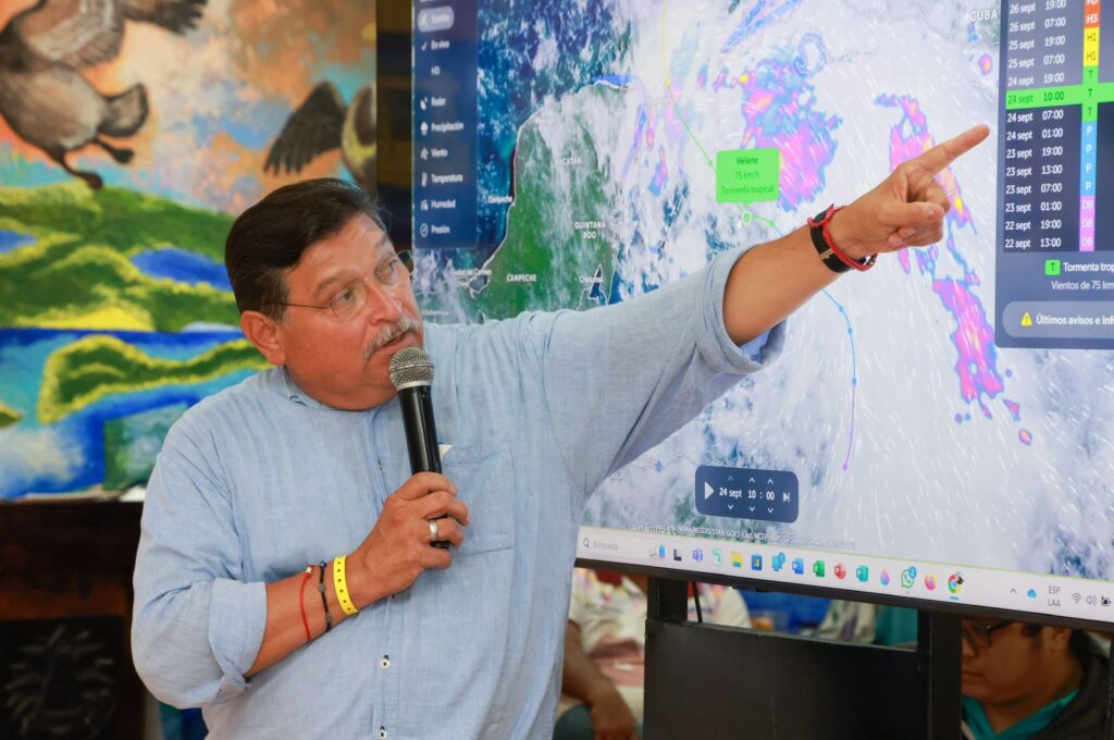 Isla Mujeres, Quintana Roo, 24 de septiembre del 2024.-Con la finalidad de coordinar trabajos para salvaguardar la vida de las familias isleñas, reducir riesgos y actuar oportunamente ante la proximidad de la Tormenta Tropical “Helene”, la Presidenta Municipal de Isla Mujeres, Atenea Gómez Ricalde, instaló este medio día el Comité Operativo Especializado en Fenómenos Hidrometeorológicos “Tormenta Tropical Helene” en la sala de Cabildo.