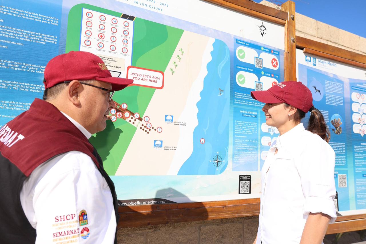 Durante su estancia también constató la atención que brinda el personal de ZOFEMAT, quienes orientan a visitantes sobre los servicios disponibles, así como el cuidado del entorno, recordando que las playas son espacios libres de humo y que está prohibido ingresar con envases de vidrio.
