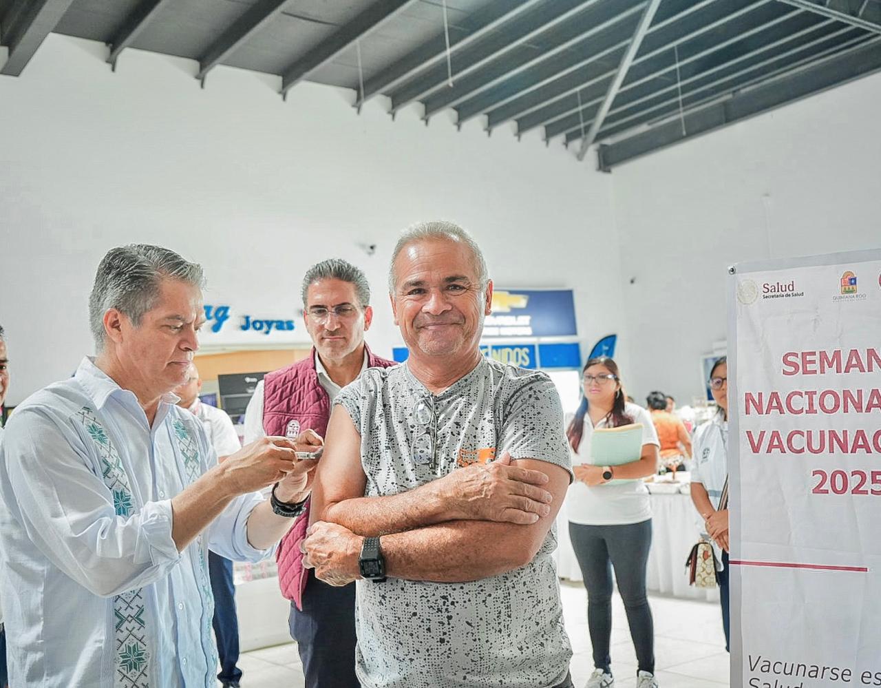 Al encabezar esta jornada, el secretario de Salud, Flavio Carlos Rosado, en representación de la gobernadora de Quintana Roo Mara Lezama, hizo un llamado a madres, padres y cuidadores a llevar a sus hijas e hijos a vacunar y completar sus esquemas de vacunación.