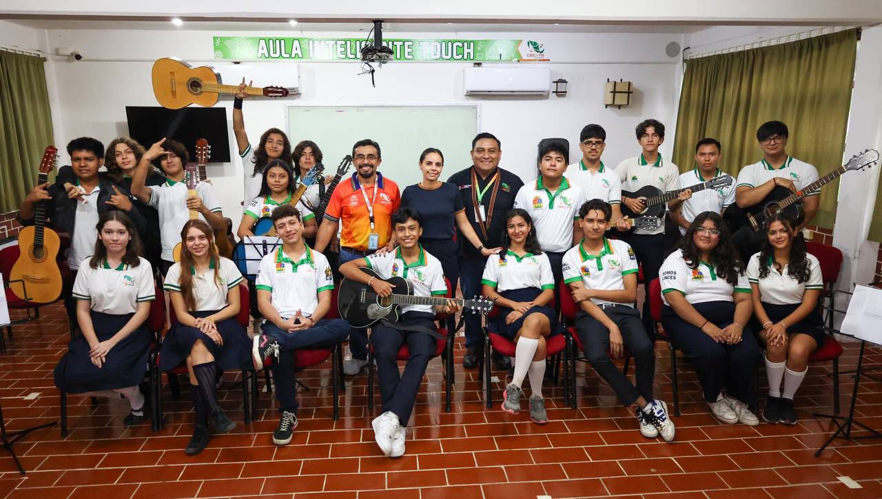 En el marco del Día Internacional del Músico, celebrado cada 22 de noviembre, la Alcaldesa visitó el plantel CECyTE Cancún II, donde constató el avance de los alumnos desde que, hace un año, donó instrumentos musicales al Club de Música de la institución, para fomentar el talento y la pasión artística entre los estudiantes.